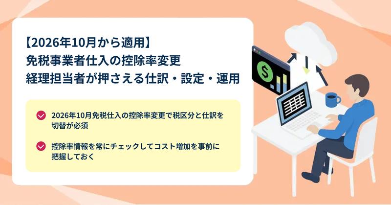 2026年10月から、免税事業者からの仕入税額控除に関する控除率が変更されます。「インボイス対応を一通り済ませているけれど、最近の報道でまた制度変更があると聞いて不安になった」「具体的に自社の経理や仕...