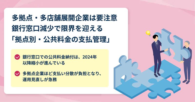 多拠点・多店舗展開企業は要注意|銀行窓口減少で限界を迎える「拠点別・公共料金の支払管理」