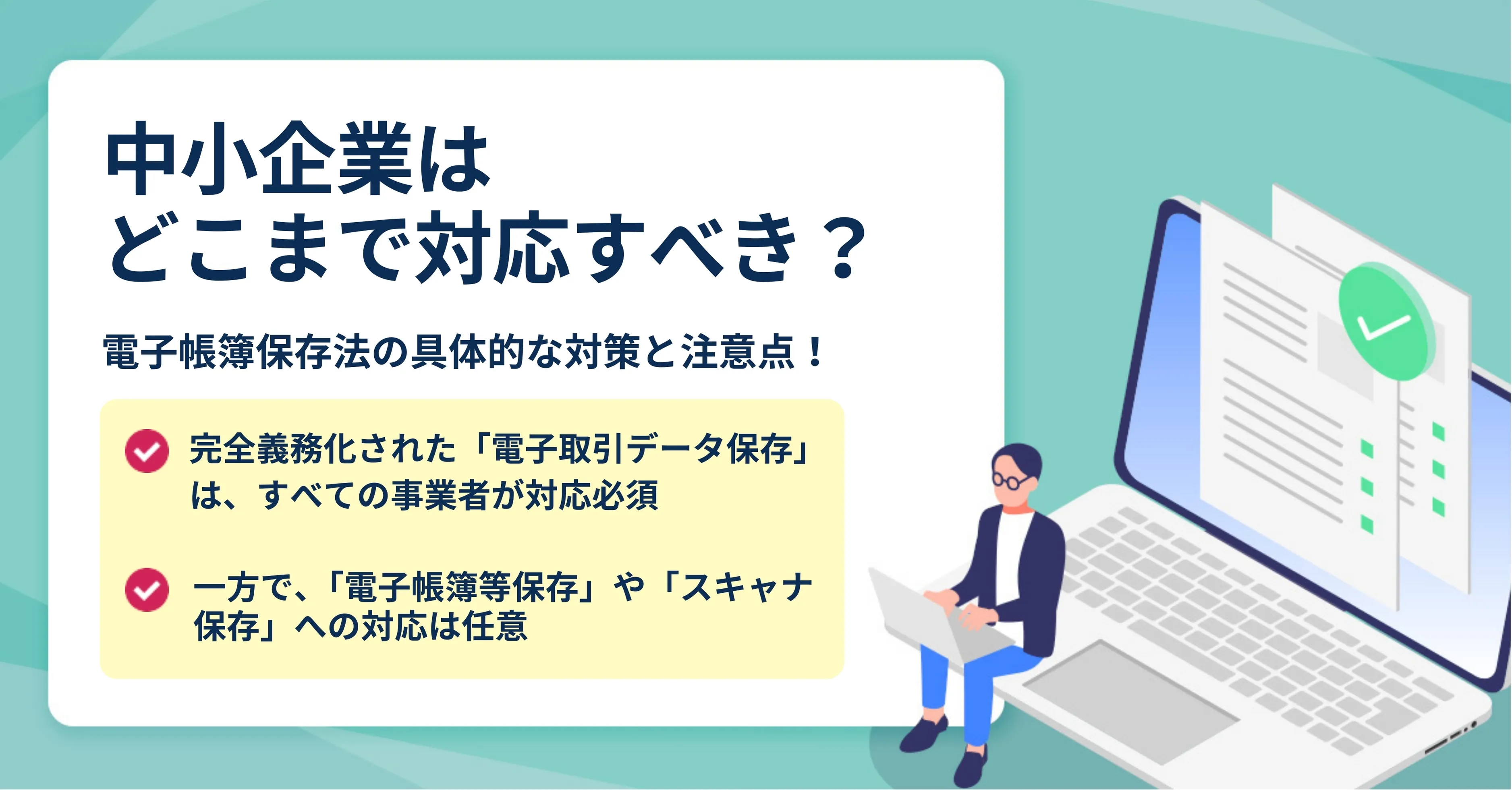 電子帳簿保存法への対応で、中小企業がまず押さえるべき最も重要なポイントは、「電子取引データ保存」が個人事業主から大企業まで、すべての事業者にとっての義務であるという点です。