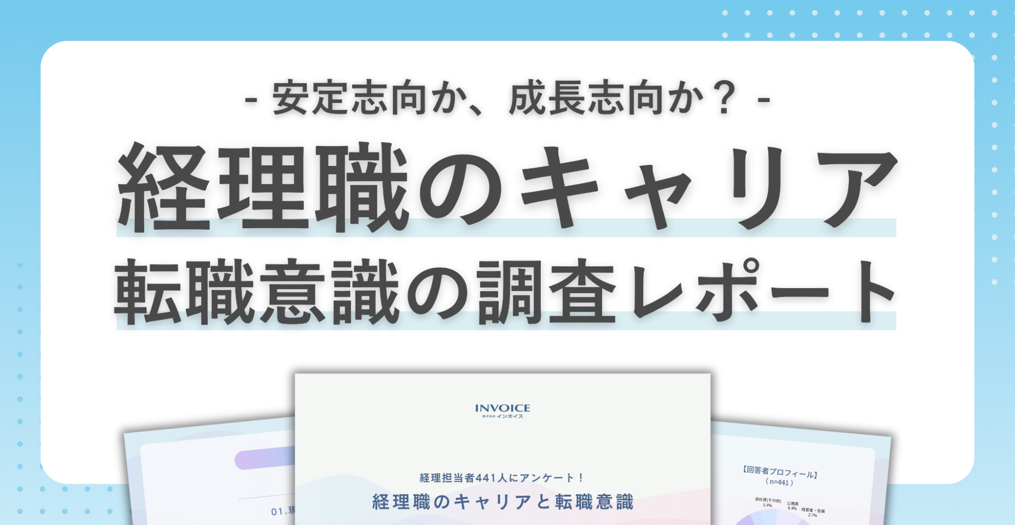 今回の調査では、株式会社インボイスが発行する「経理職のキャリアと転職意識」(対象:441人)をもとに、経理担当者のキャリアの現状を明らかにしました。