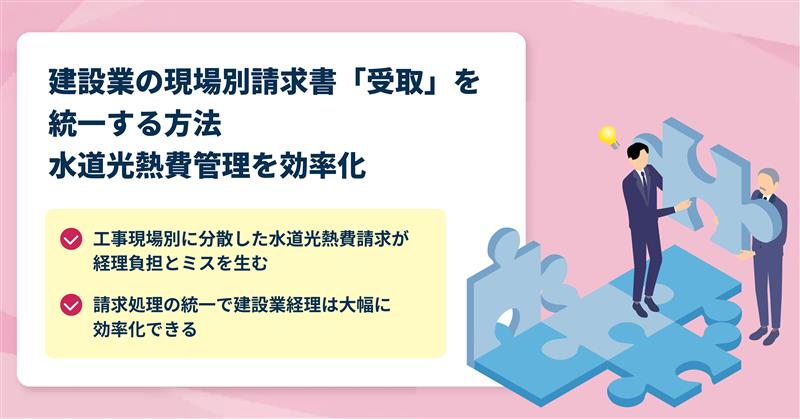 工事現場ごとにバラバラに届く水道・電気・ガスの請求書処理に、日々多くの手間と時間を奪われていませんか?「現場ごとに支払いのタイミングが違う」「請求書のフォーマットや支払方法がバラバラで管理が煩雑」「インボイス要件の確認も負担」といった悩みを抱える経理担当者は少なくありません。