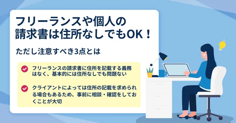 フリーランスや個人の請求書は住所なしでもOK!ただし注意すべき3点とは