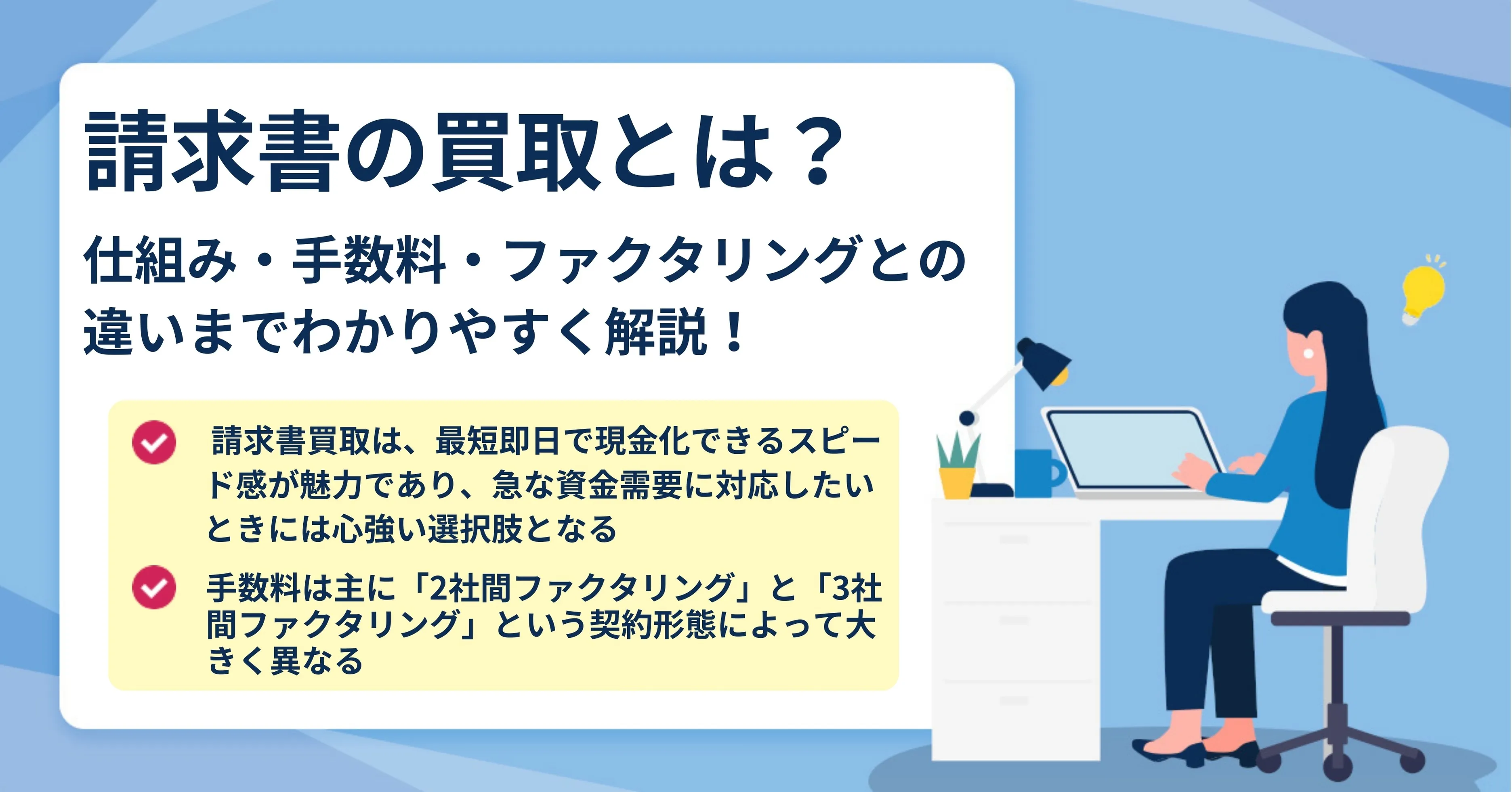 本記事では、請求書買取の仕組みや利用の流れといった基礎から、メリット・デメリット、ファクタリングとの違いまでを整理して解説いたします。読んでいただければ、ご自身の状況に合った資金調達方法が見つかるはずです。