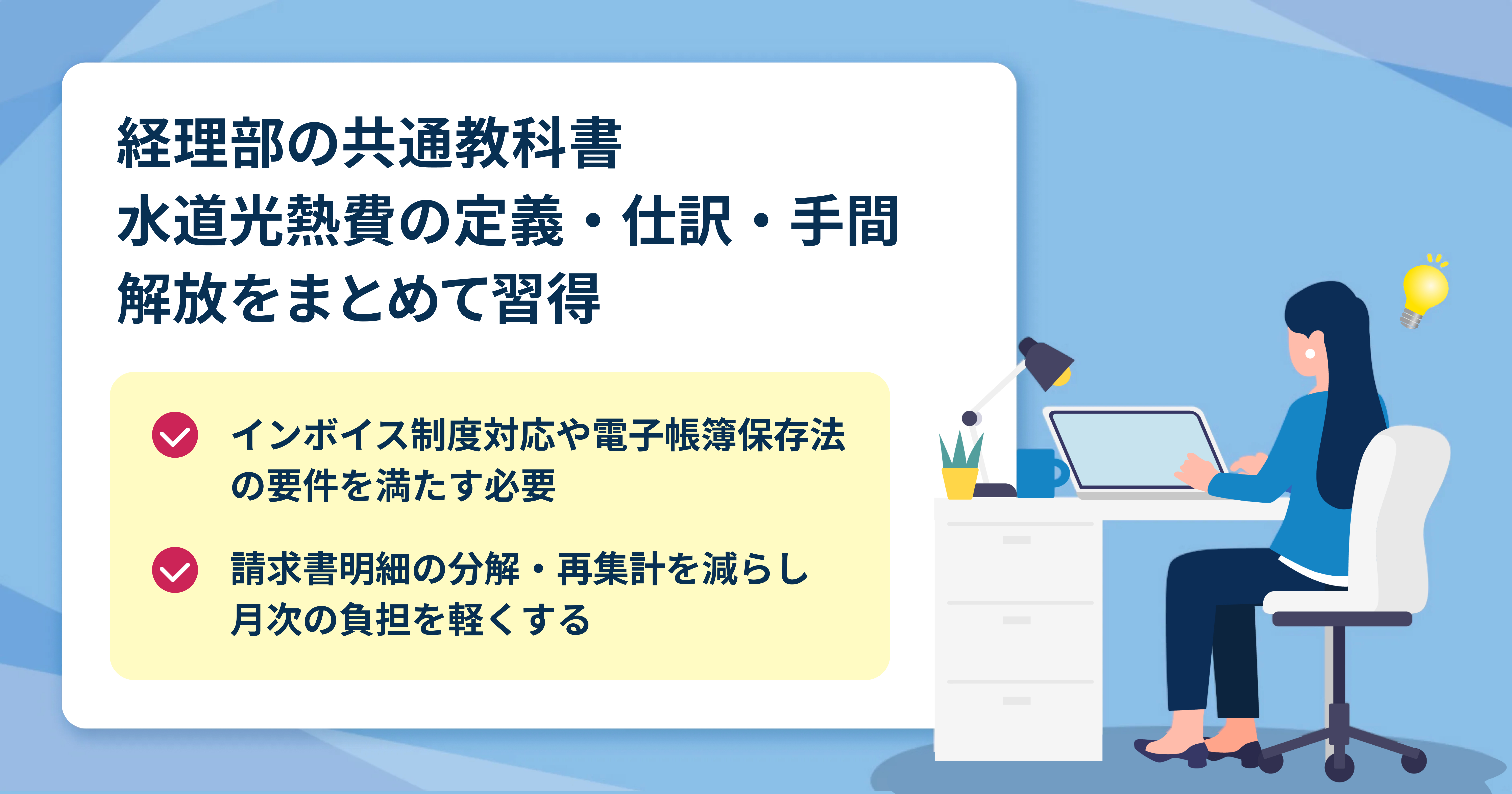 ここでは、水道光熱費の定義や代表的な費目、請求書の扱い方、仕訳の流れと注意点まで、経理初心者でも押さえておきたい基本ポイントを整理します。まずは主なポイントをリストで確認しましょう。