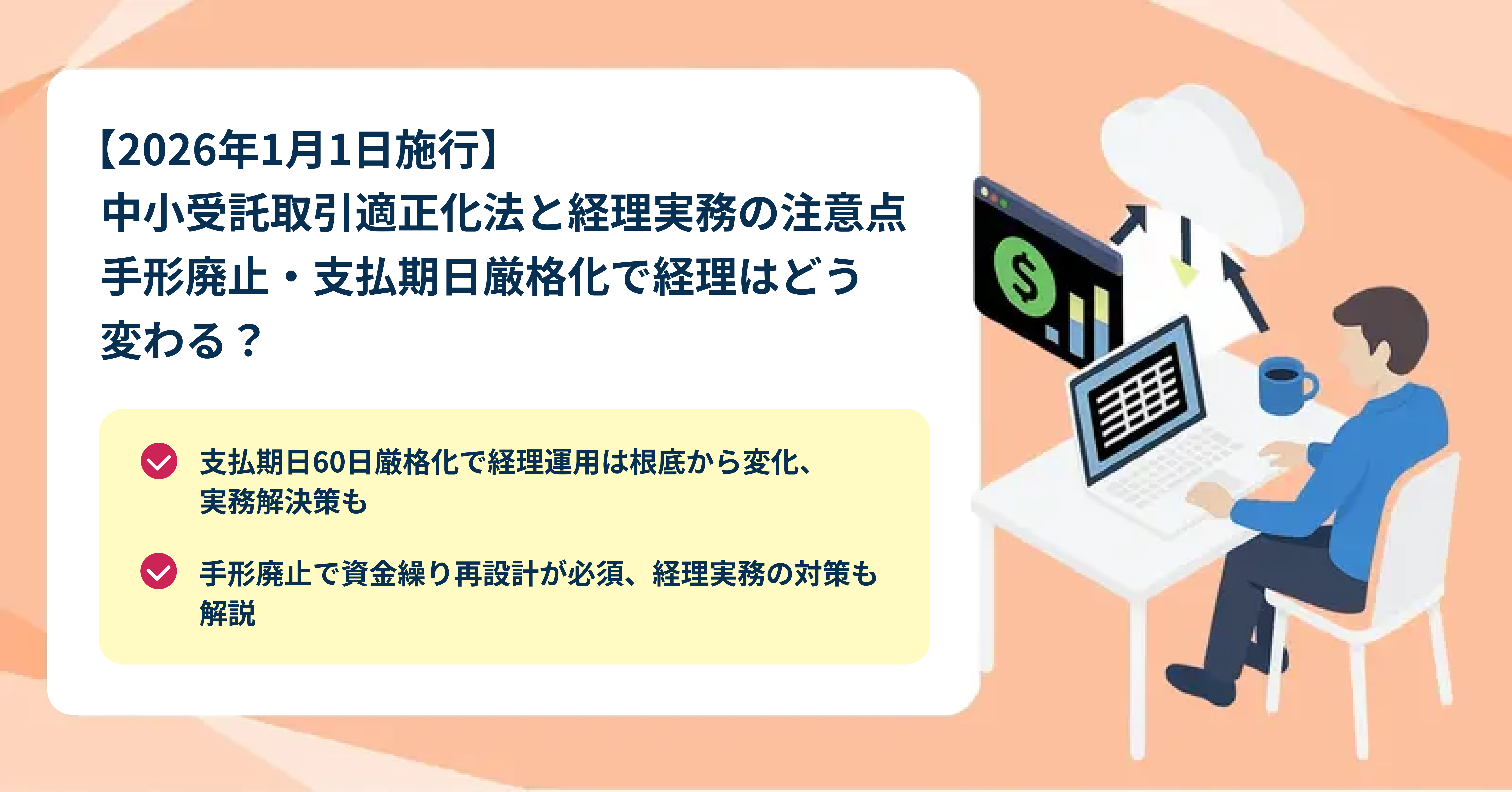 今回の施行により、発注から支払までの一連の経理業務が、支払期日管理、決済手段、証跡管理の面で根底から見直されるのではないかと不安を感じていませんか。